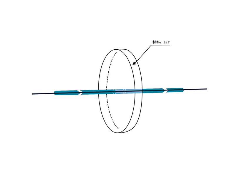 材料为氟化锂晶体的透过率范围在从真空紫外105nm到红外的6.0μm,是真空紫外透过率最好的材料。这种晶体被广泛的用来制造紫外-可见-红外领域的光学窗口、透镜、棱镜和折射元件。此外,该晶体也可以被用作X射线探测器晶体。较低的折射率使得该晶体在没有防反射、镀膜的情况下直接使用。作为窗口材料,氟化锂晶体是一种优良的消色差和复色差材料,被广泛应用于光学仪器中的紫外、红外透射窗口透镜和棱镜。