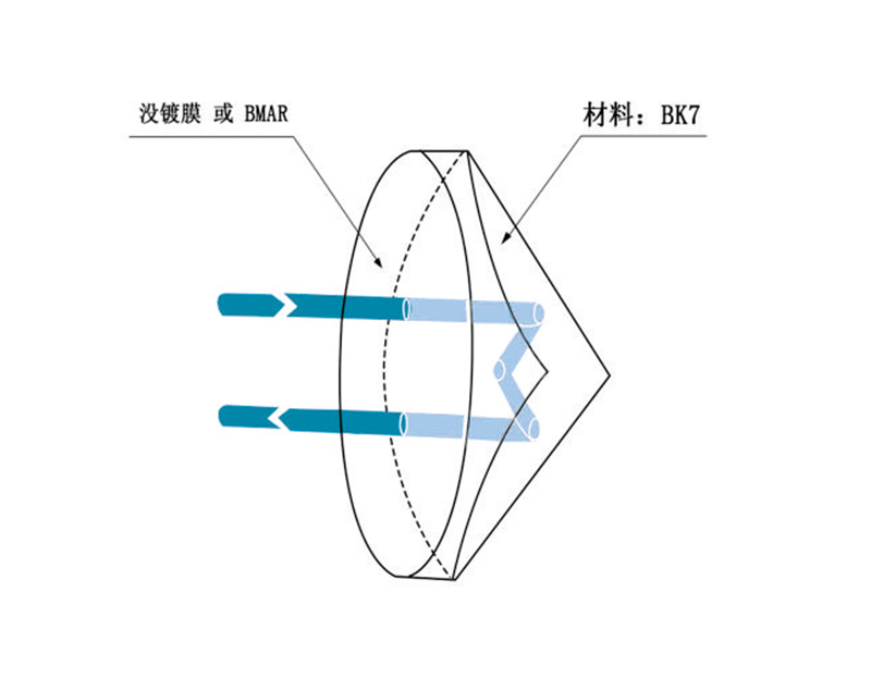 角锥棱镜是一种作回射用的玻璃元件,它用三个90°角回射入射光束。这些玻璃角的误差必须在几秒精度以内,但是入射面可以有5″以上的误差而对角锥棱镜的性能无明显的影响。