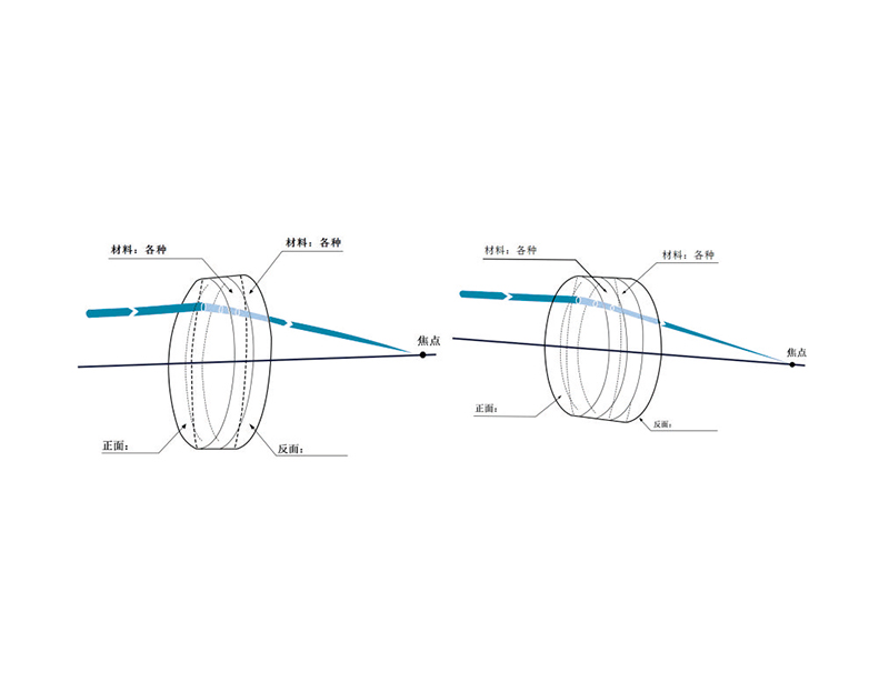 胶合透镜是一种把低分散的正透镜负透镜粘接而成的消差透镜。对分散的不同值和透镜形状进行了优化,实现了最小色差。