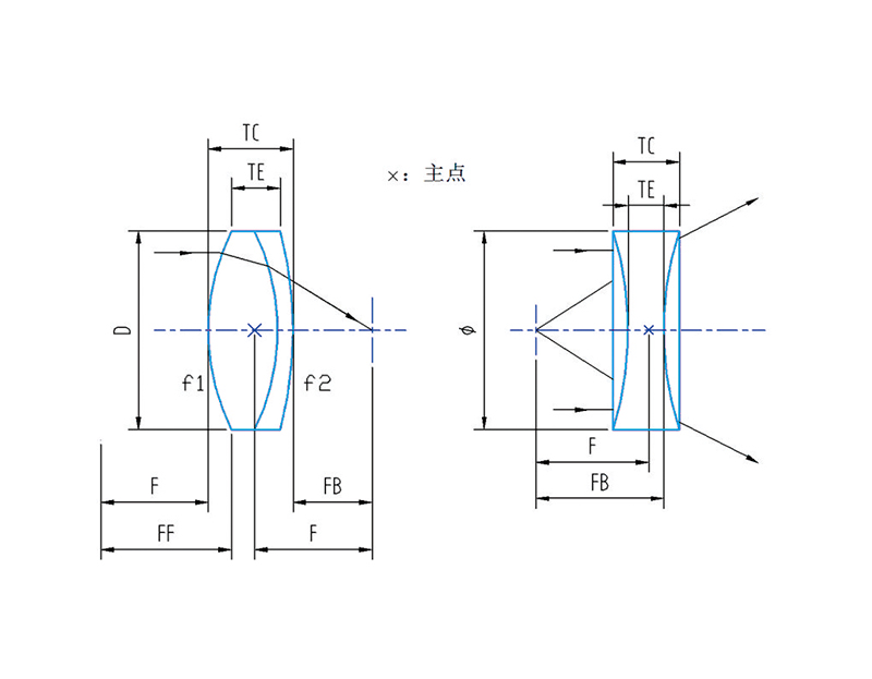 此类透镜可在整个可见光区域使用。其球差在设计时也进行了优化,和单个透镜相比,消色差双胶合透镜的球差要小得多。使用于无限共轭状态时,其球差最小。