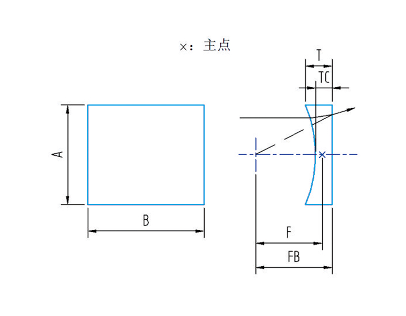平凹柱面透镜成发散的线状虚像,用于仅需控制光束的一个方向的尺寸。