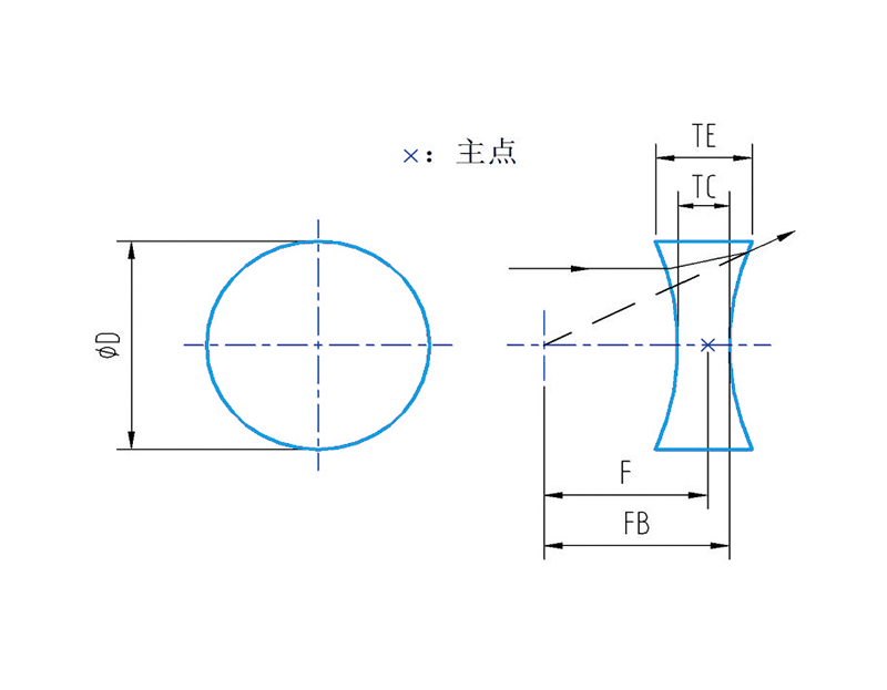 平凹透镜具有负的焦距,被用于发散一束平行光。