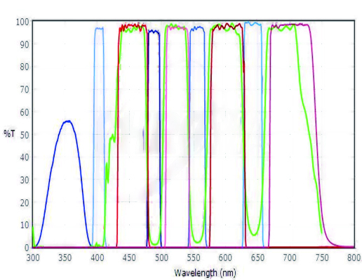 带通型: 选定波段的光通过,通带以外的光截止。其光学指标主要是中心波长(CWL),半带宽(FWHM)。分为窄带和宽带。