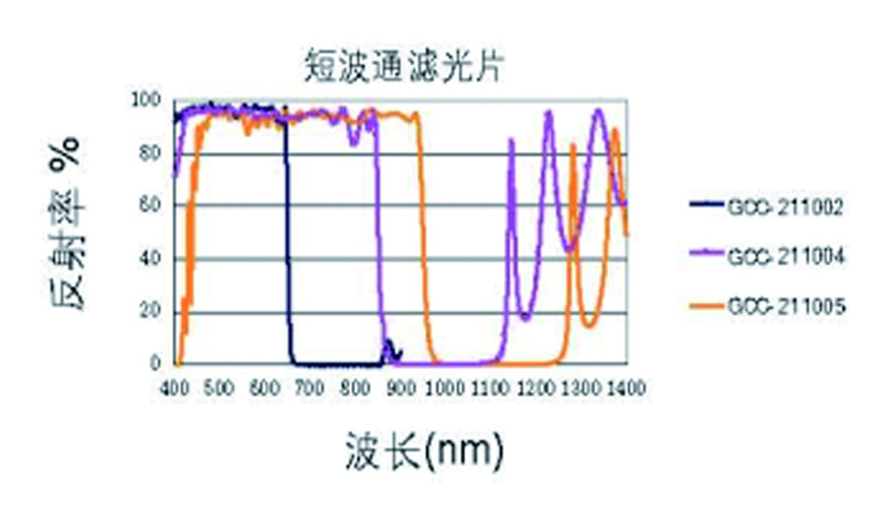 短波通型(又叫低波通):短于选定波长的光通过,长于该波长的光截止。 比如红外截止滤光片。