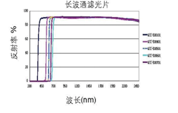 长波通型(又叫高波通):长于选定波长的光通过,短于该波长的光截止。比如红外透过滤光片。